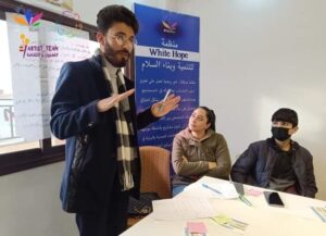 قام فريق ارتيس تيم بالتعاون مع منظمة white hope بتنفيذ جلسة الثالثة من مبادرة يد بيد نحو مجتمع متماسك ا عن تأثير وسائل التواصل الاجتماعي على فئة الشباب. تاتي هذه الجلسة ضمن مبادرة يد بيد نحو مجتمع متماسك الذي يقام فيها فريق Artist_Team و منظمة روز للدعم والتمكين – Rose Organization for Support and Empowerment و مركز دعم الاستقرار SSC