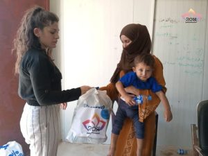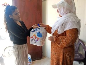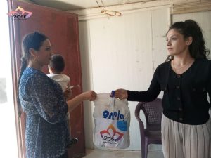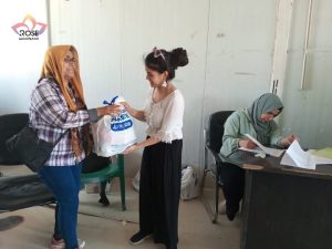 قامت منظمة روز للدعم والتمكين وبعد تنفيذ جلسات التوعية بتوزيع سلات صحية ( سلة كرامة ) للنساء.
