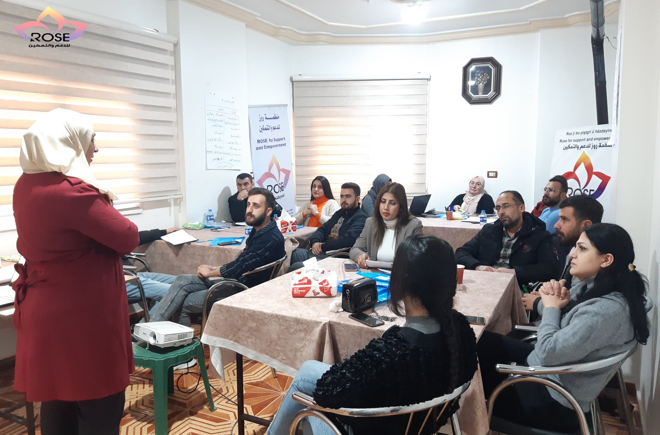 قامت منظمة روز للدعم والتمكين بتدريب مجموعتين من الرجال والنساء كل مجموعة مؤلفة من (١٥) رجل وامرأة في ورشتين تدريبيتين على مدار ستة أيام بمعدل ثلاثة أيام لكل مجموعة حول الرجوليات الايجابية وإشراك الرجال تضمنت الورشة المحاور التالية (الجنس،الجندر-التمييز المبني علئ النوع الاجتماعي-الرجوليات الايجابية وأدوارها-إشراك الرجوليات الايجابية-الحليف) وذلك في قاعة منظمة روز للدعم والتمكين في مدينة القامشلي.
